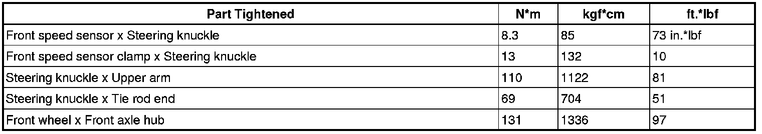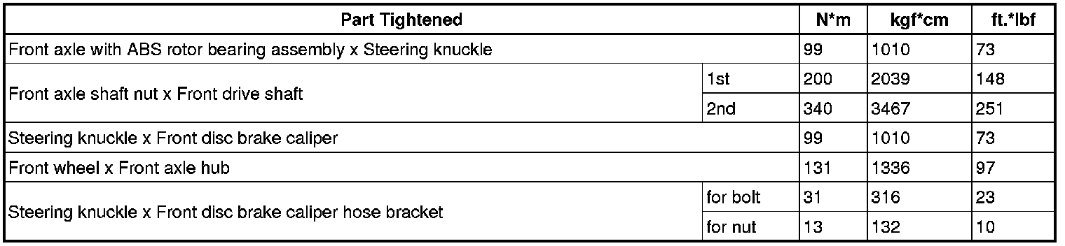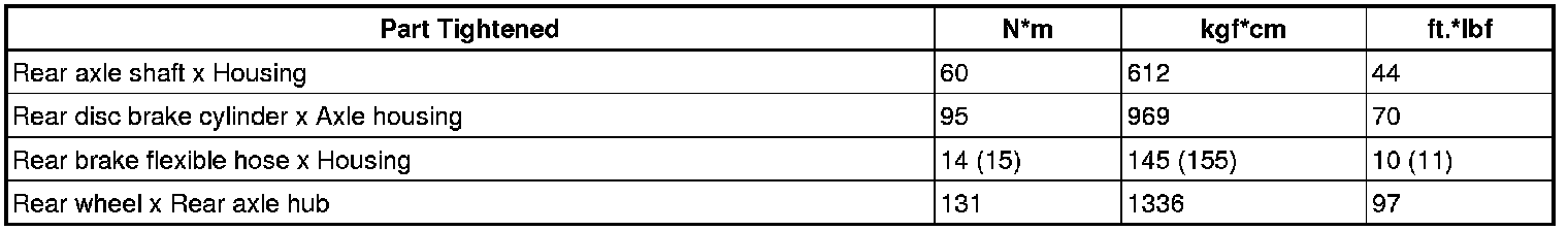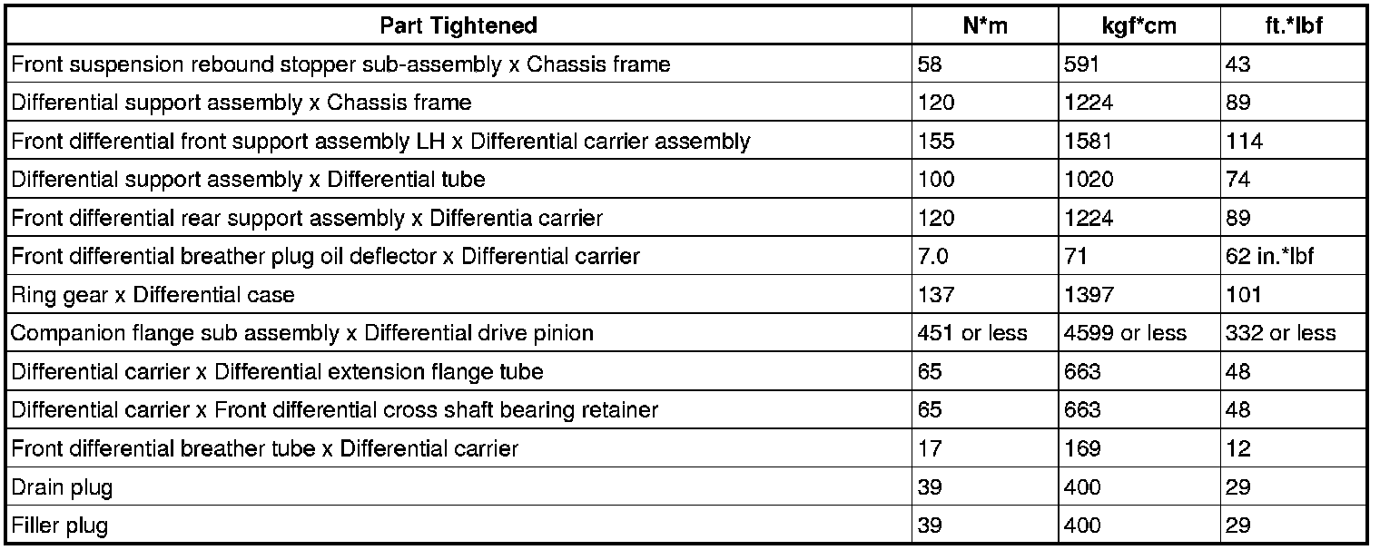 SPECIFICATIONS: AXLE AND DIFFERENTIAL: TORQUE SPECIFICATIONS
