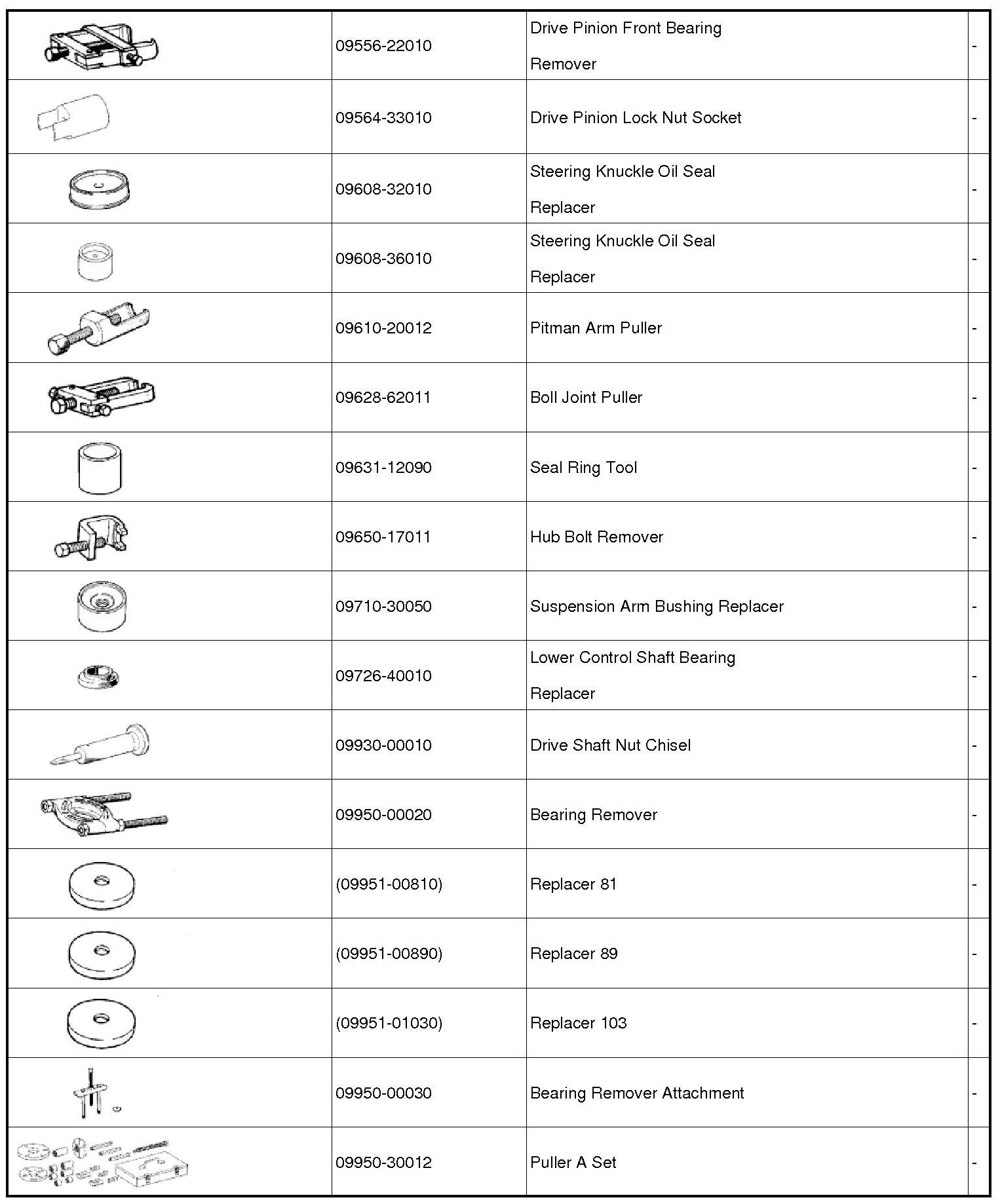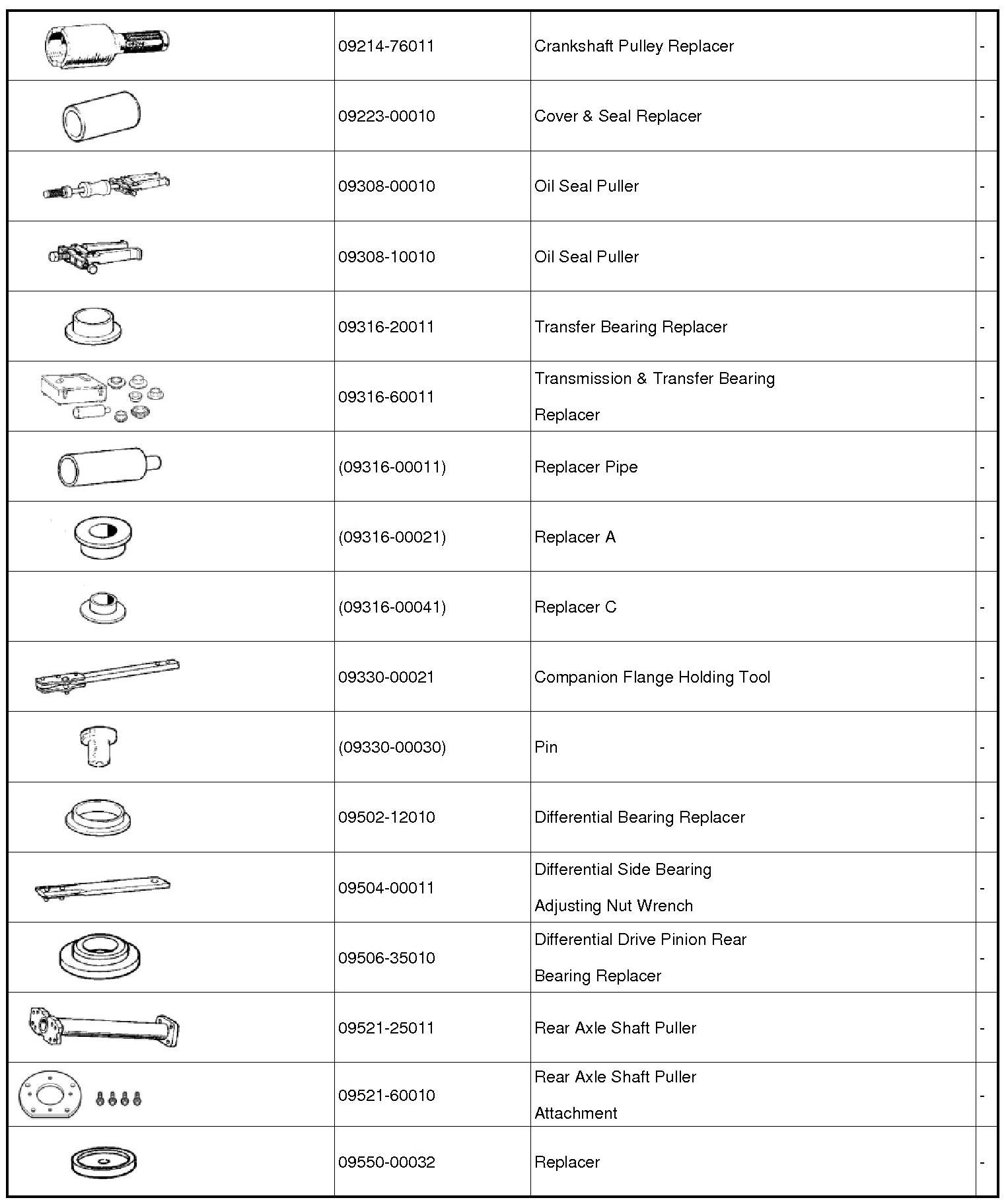 PREPARATION: AXLE AND DIFFERENTIAL: SST