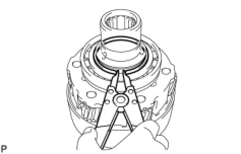 (a) Using a snap ring expander, expand the snap ring as shown in the illustration.