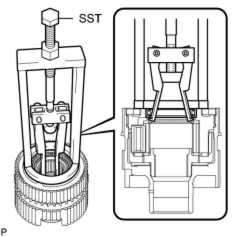 (a) Using SST and a press, press out the bearing.
