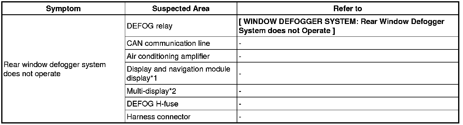 WINDOW / GLASS: WINDOW DEFOGGER SYSTEM: PROBLEM SYMPTOMS TABLE