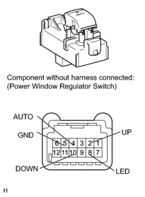 - If the result is not as specified, replace the power window regulator switch assembly.