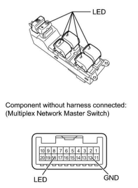 - If the result is not as specified, replace the multiplex network master switch assembly.