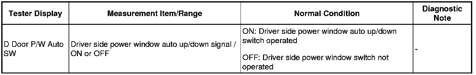 Driver Side Power Window Auto Up / Down Function does not Operate with Power Window Master Switch