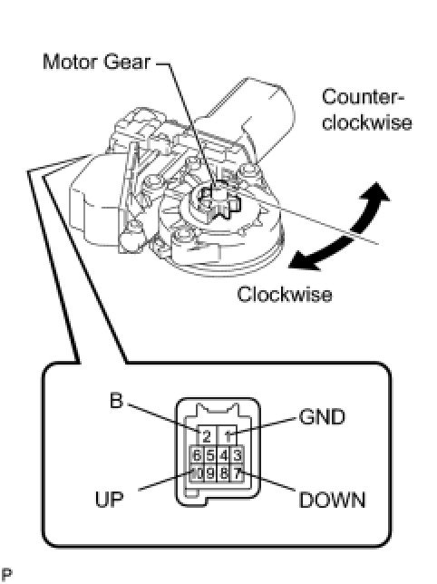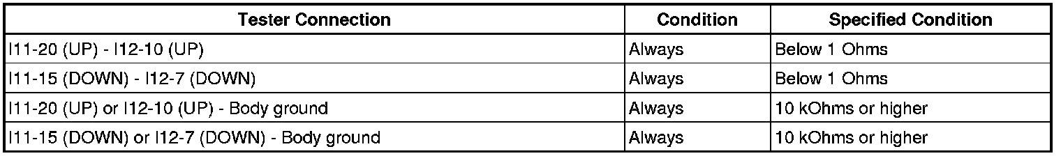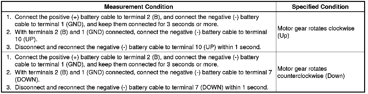 (c) Apply negative (-) battery voltage to connector terminals 1 (GND), and 7 (DOWN) or 10 (UP).