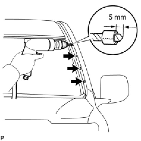 - Do not pry the No. 3 windshield outside moulding clips with the drill, because this may cause damage to the installation holes of the No. 3 windshield outside moulding clips or the drill bit.