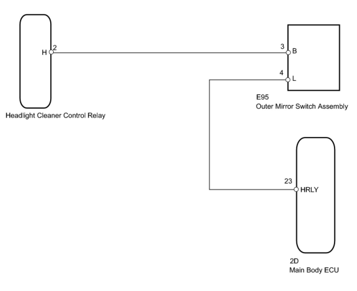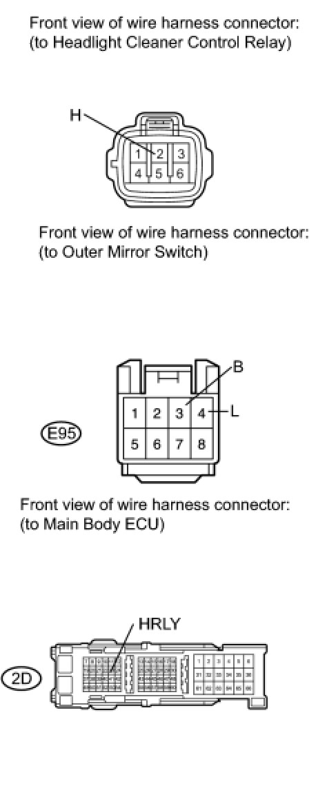 3. CHECK HARNESS AND CONNECTOR (OUTER MIRROR SWITCH - HEADLIGHT CLEANER CONTROL RELAY AND MAIN BODY ECU)