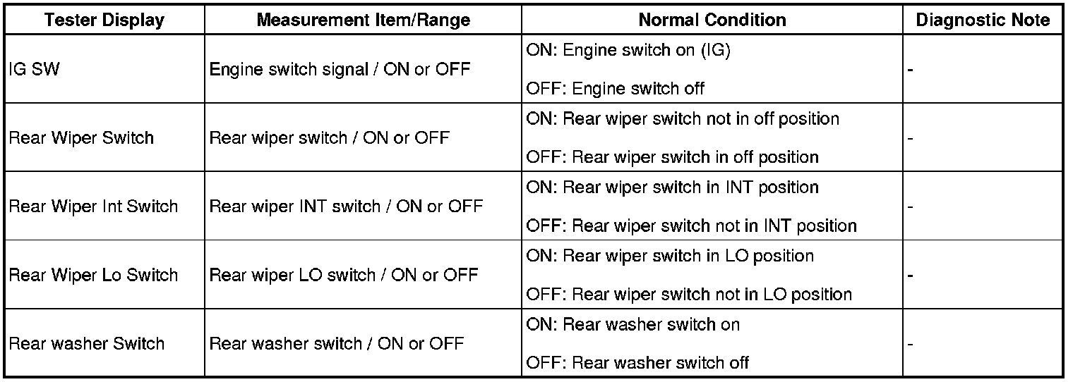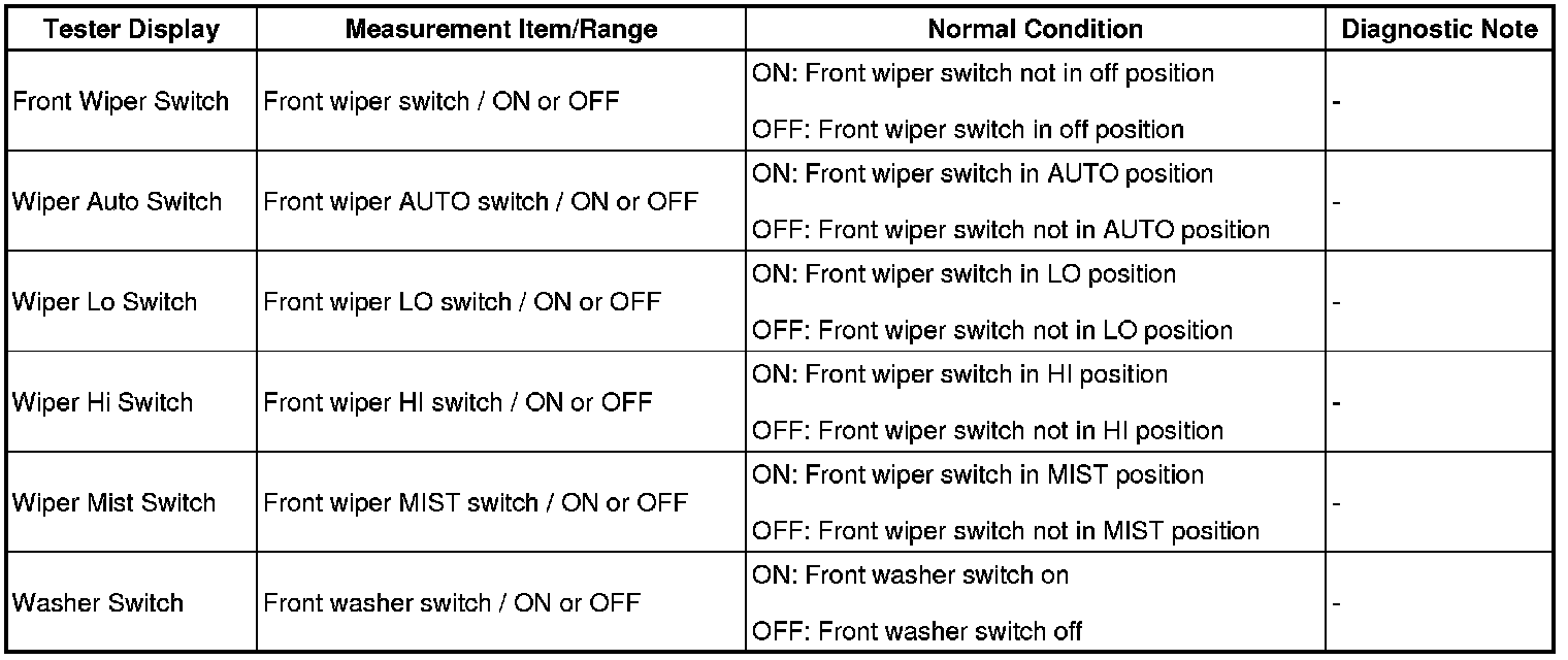 WIPER / WASHER: WIPER AND WASHER SYSTEM: DATA LIST / ACTIVE TEST