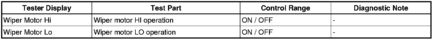 When a Body No. 5 (windshield wiper ECU) related front wiper switch is on, Active Test items related to the front wiper switch are prohibited (double operation prohibition). Check that the front wiper switches are off before performing Active Tests.