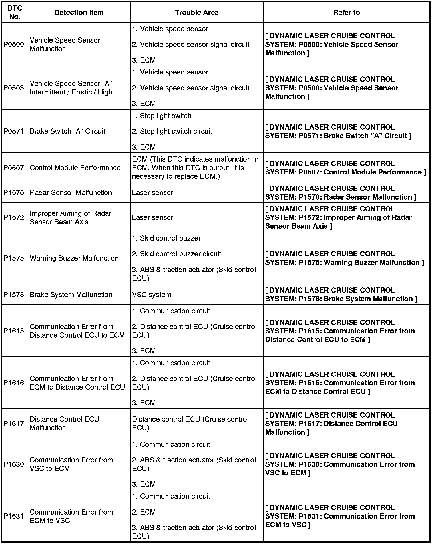DIAGNOSTIC TROUBLE CODE CHART