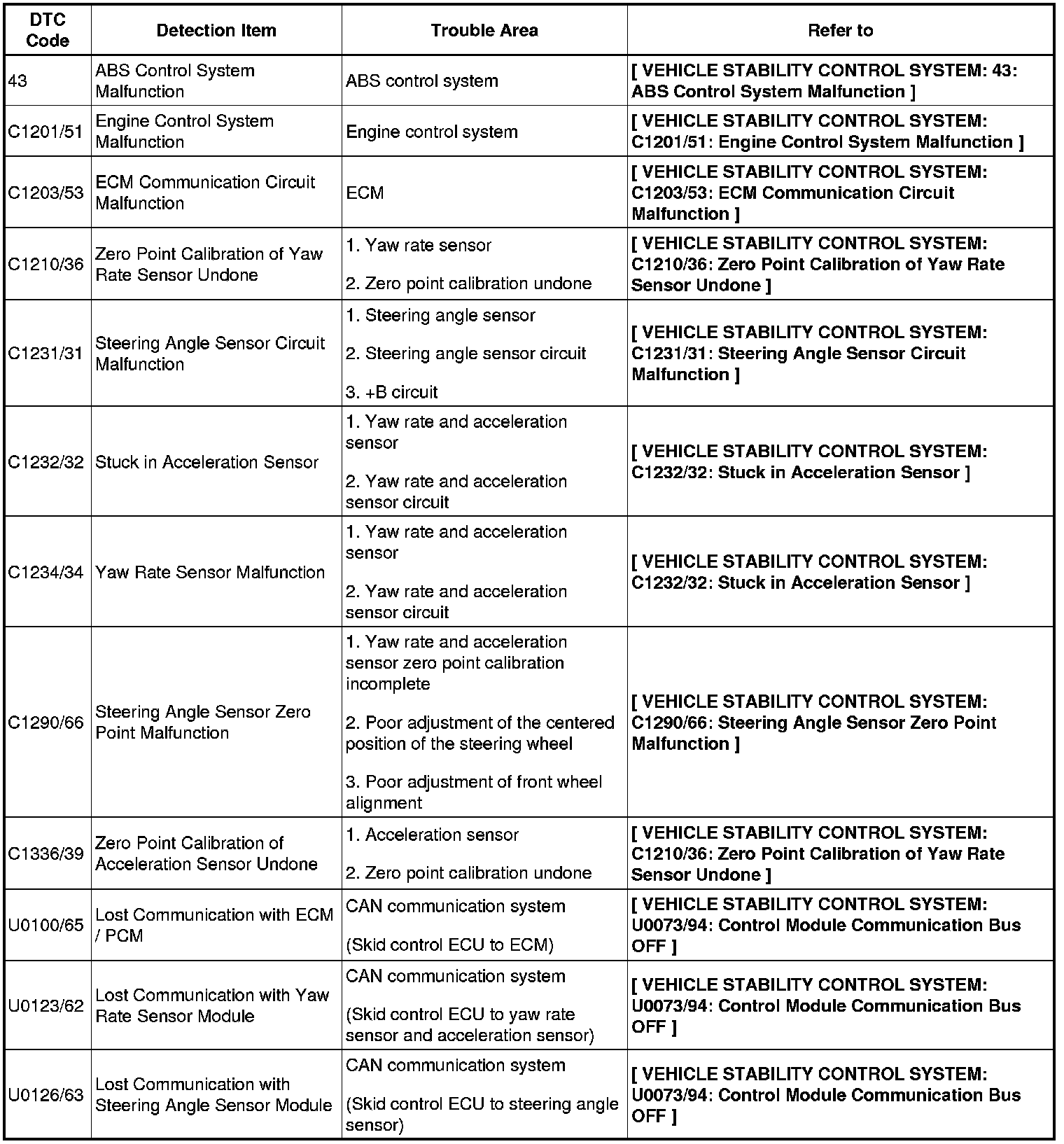 - If any of U0073/94 and U0124/95 are displayed, inspect the CAN communication system.