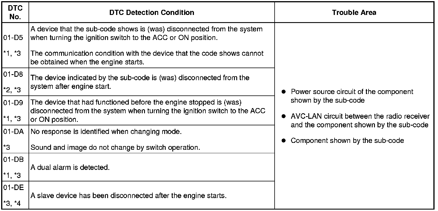 - *3: If the device is reported as not existing during verification, check the power source circuit and AVC-LAN circuit for the device.