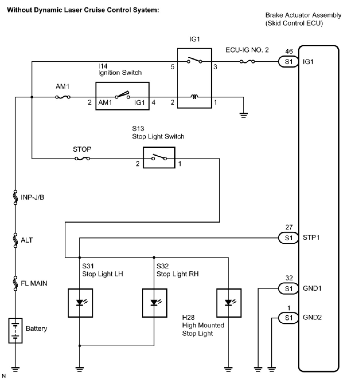 16. CHECK HARNESS AND CONNECTOR (STOP LIGHT SWITCH - SKID CONTROL ECU)