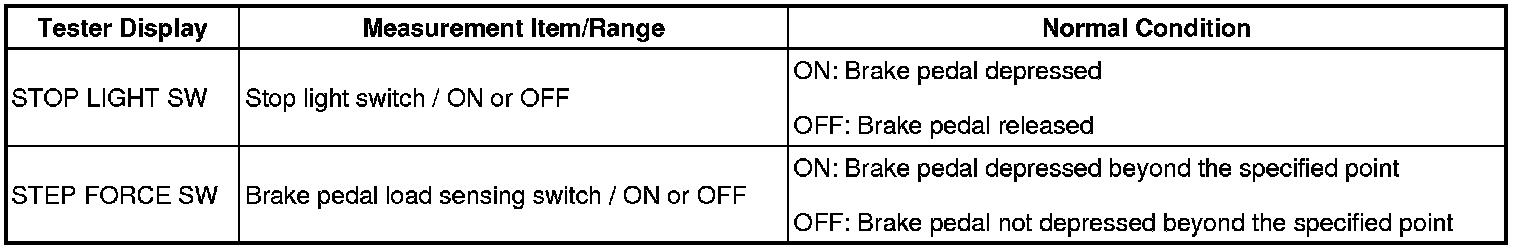 First the stop light switch should turn ON, and then the brake pedal load sensing switch should turn ON.