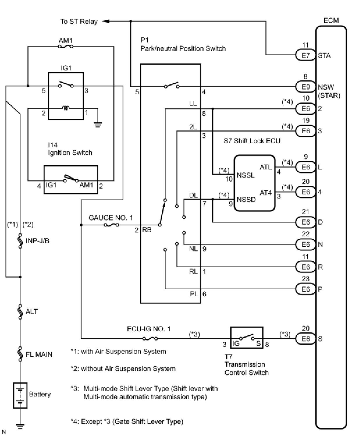 2GR-FE ENGINE CONTROL SYSTEM: SFI SYSTEM: P0705: Transmission Range Sensor Circuit Malfunction (PRNDL Input)