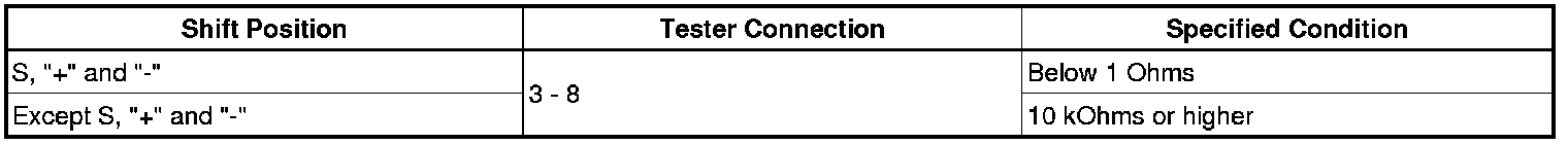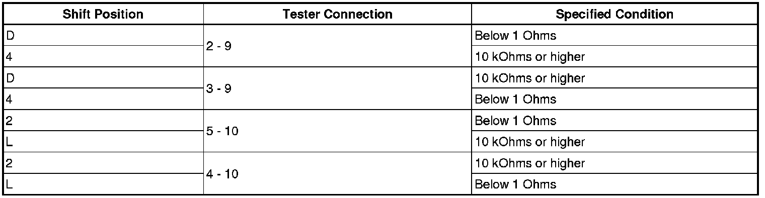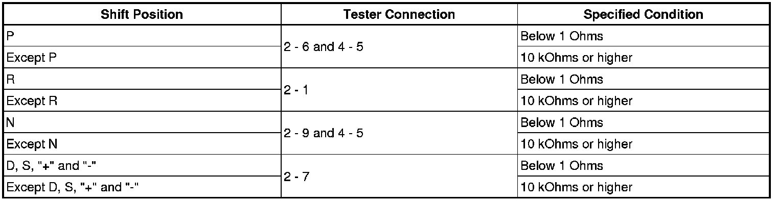 Measure resistance according to the value(s) in the table below when the shift lever is moved to each position.