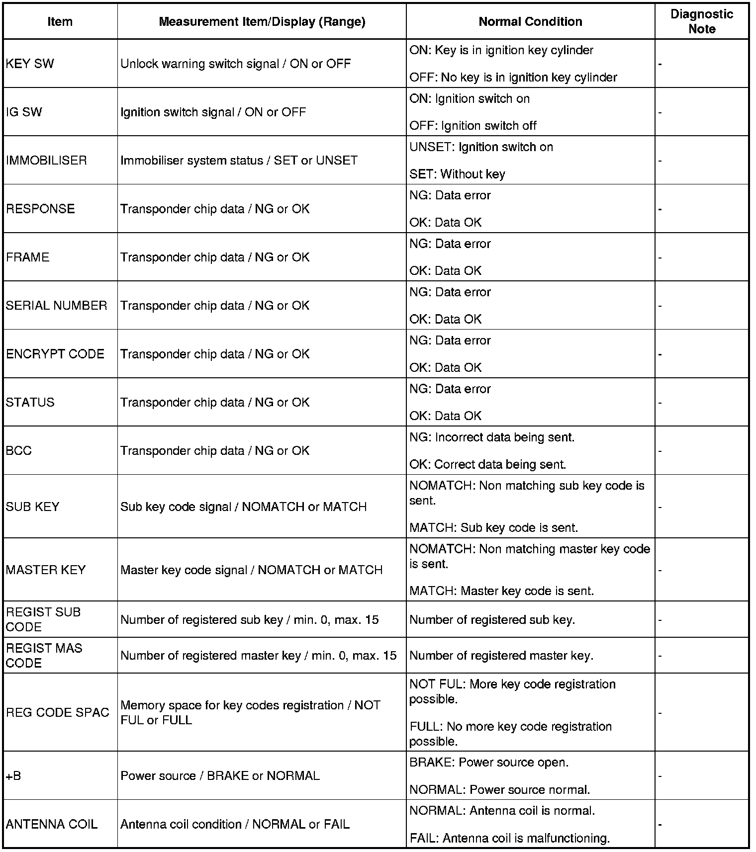 ENGINE IMMOBILISER SYSTEM: DATA LIST / ACTIVE TEST