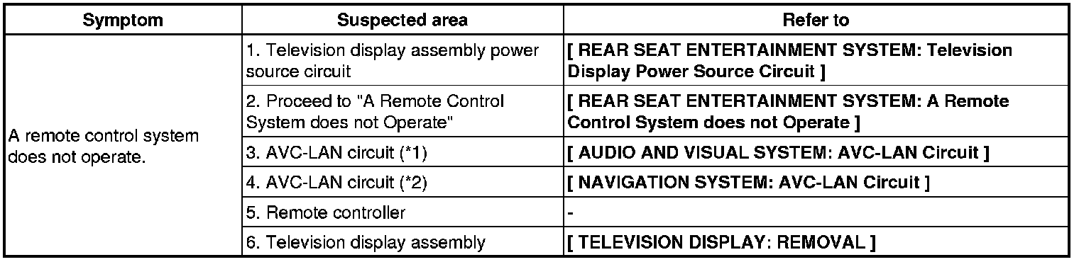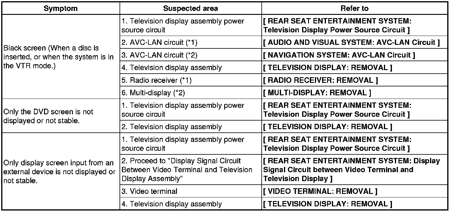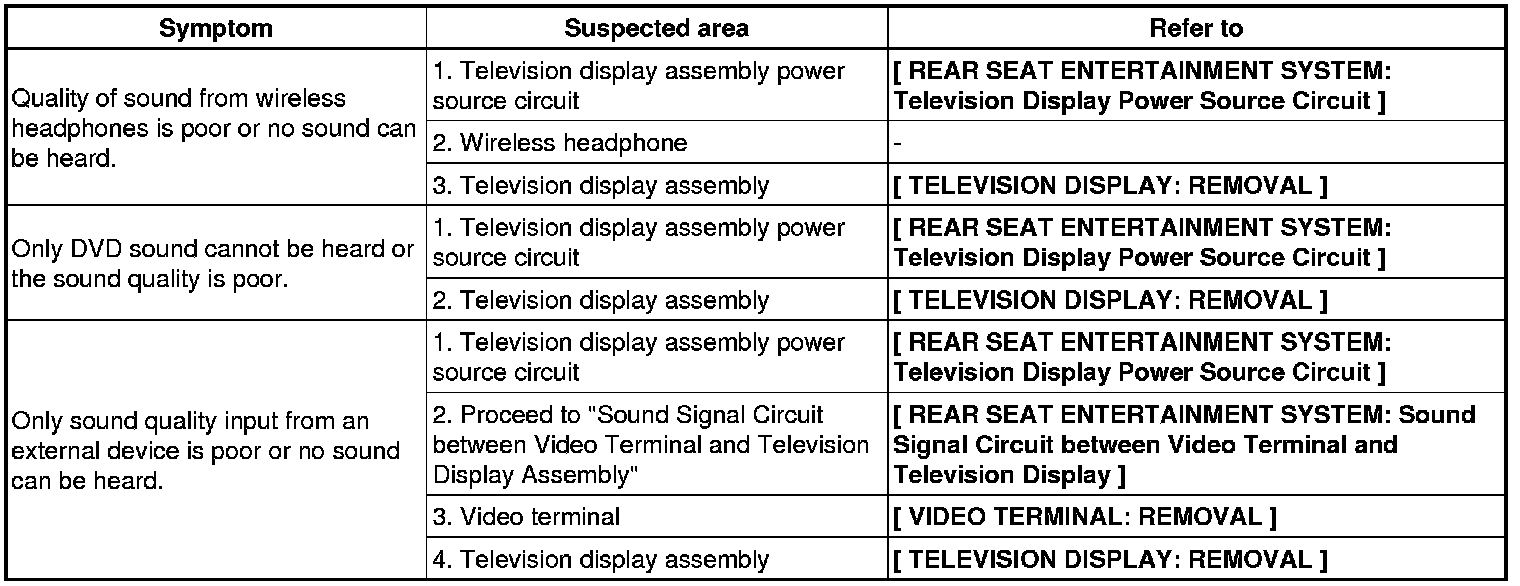 AUDIO / VISUAL: REAR SEAT ENTERTAINMENT SYSTEM: PROBLEM SYMPTOMS TABLE