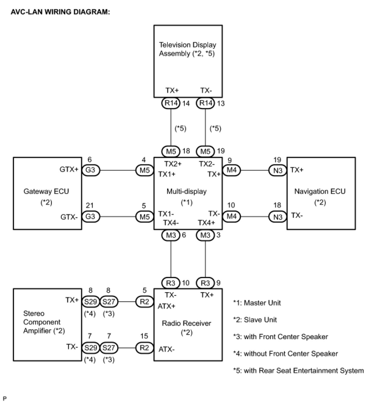 (a) Referring to the AVC-LAN wiring diagram below, check the AVC-LAN circuit between the multi-display and the component shown by the sub-code.