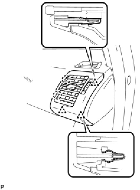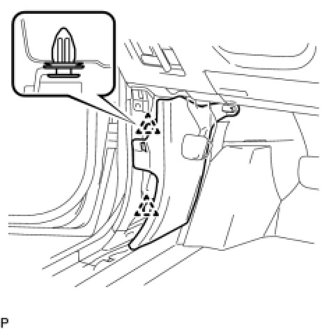 (a) Slide the floor carpet cover center LH to the rear of the vehicle, and engage the 2 claws to the instrument panel finish panel lower center at the floor carpet cover center LH.