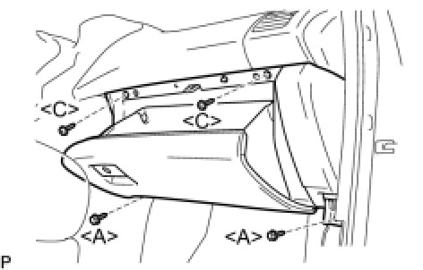 (b) Install the 2 bolts [A], the 2 screws [C], and the glove compartment door assembly.