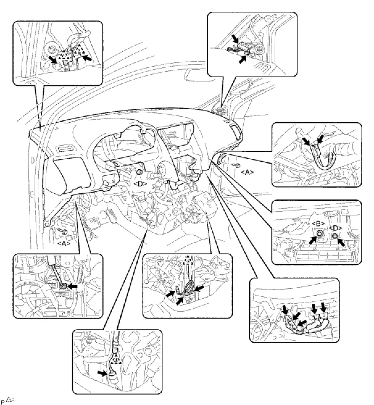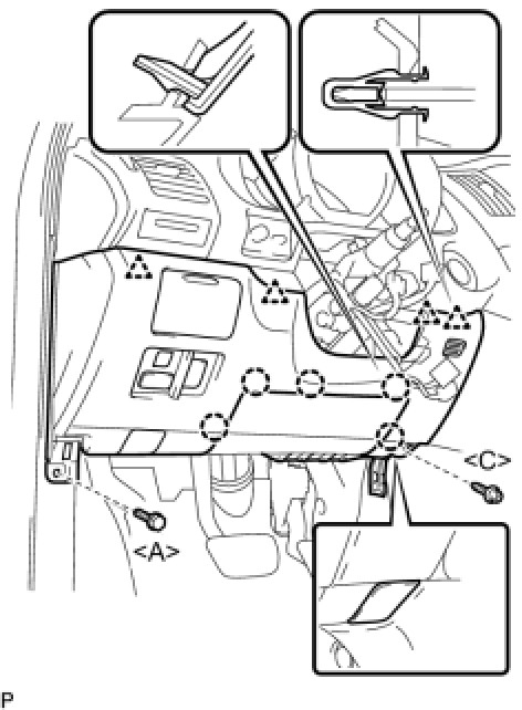 (b) Install the 7 screws [C] and the instrument panel finish panel lower center.