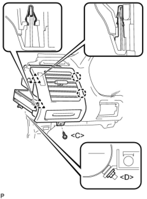 (b) Install the screw [C], nut [D], and the instrument panel No.1 register assembly.