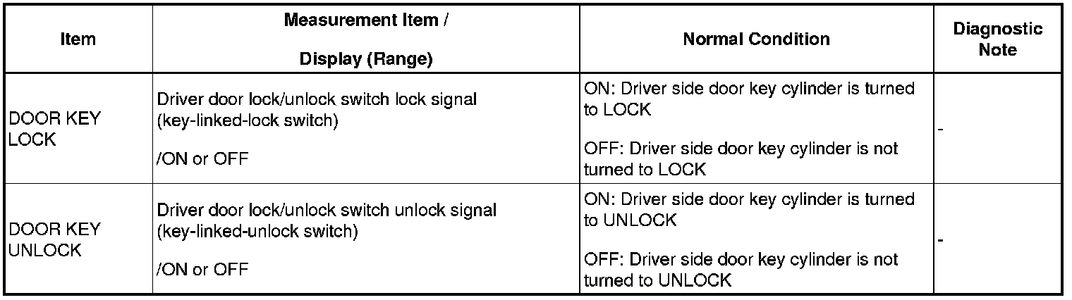DOOR LOCK: POWER DOOR LOCK CONTROL SYSTEM: Driver Side Door Key Lock and Unlock Switch Circuit