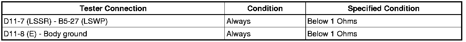 The body ECU applies voltage to the door unlock detection switch via terminal LSWP. When the door unlock detection switch is on (there is continuity between the switch terminals), a lock state signal is input to the ECU. When the switch is off (there is no continuity between the switch terminals), an unlock state signal is input.