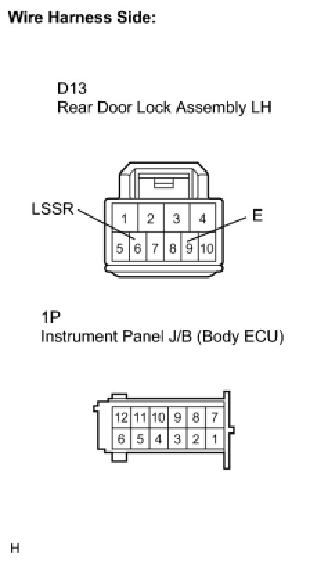 The body ECU is connected to the rear left side door lock assembly via terminal LSWL and rear left side door lock/unlock state signals are input to the ECU.