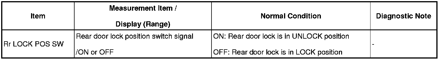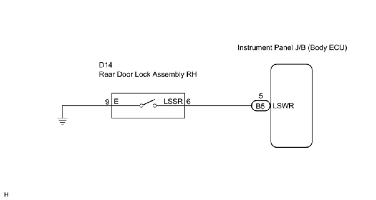 The body ECU is connected to the rear left side door lock assembly via terminal LSWR and rear left side door lock/unlock state signals are input to the ECU.