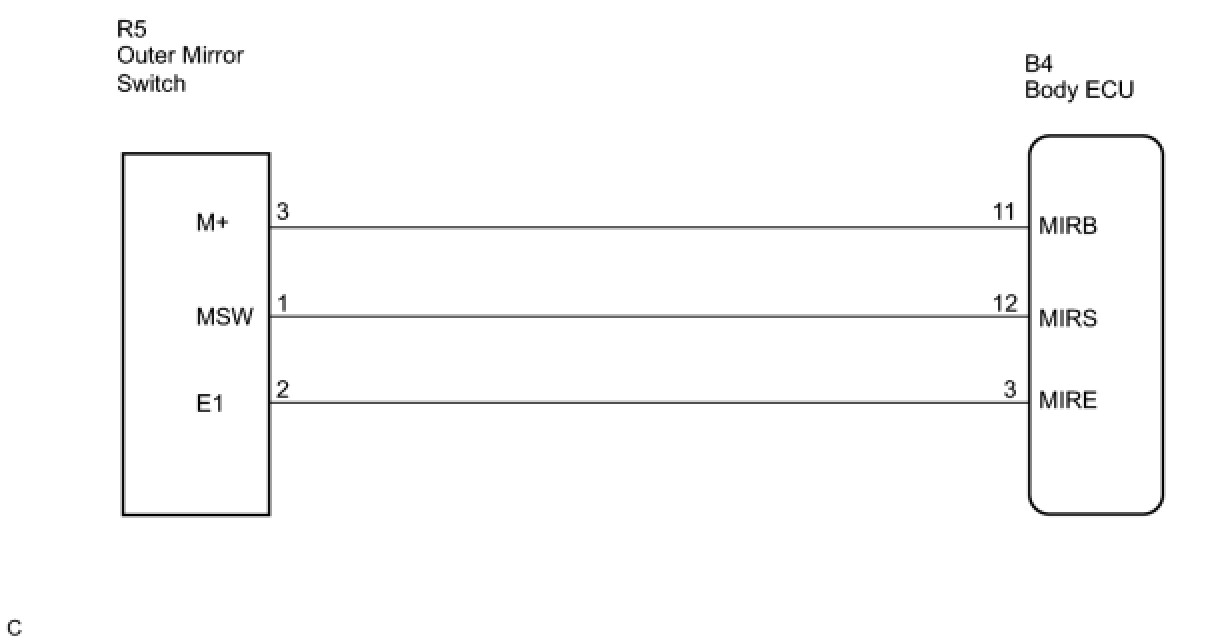 3. CHECK WIRE HARNESS (OUTER MIRROR SWITCH - BODY ECU)