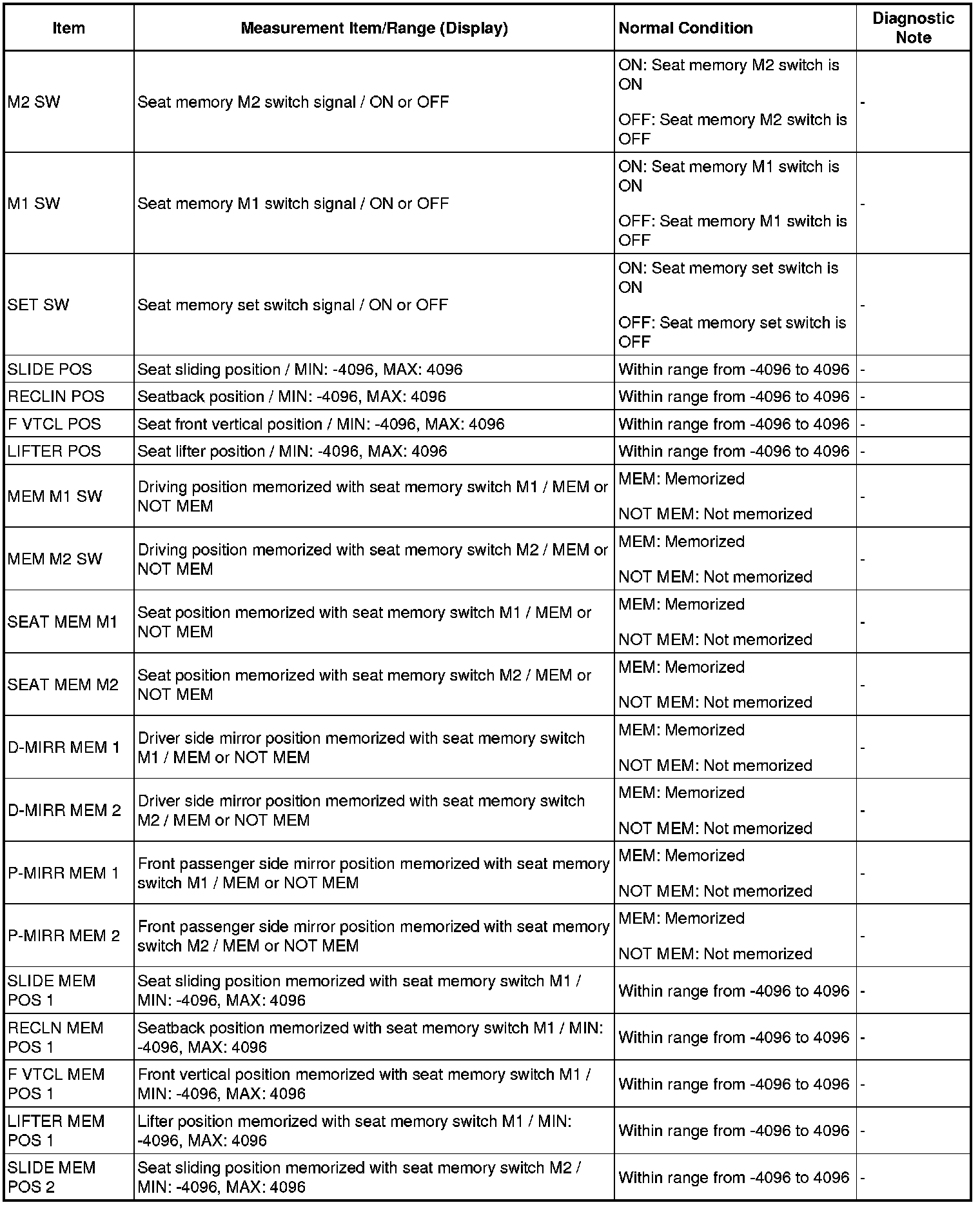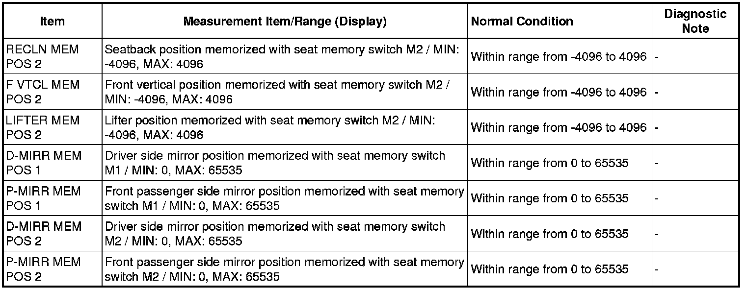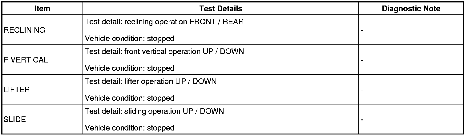 SEAT: FRONT POWER SEAT CONTROL SYSTEM (w/ Memory): DATA LIST / ACTIVE TEST