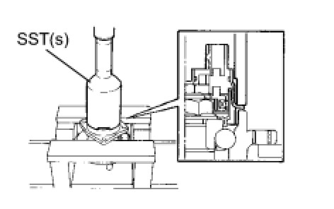 (c) Using SST(s) and a press, install the skid control sensor onto the hub & bearing assembly.