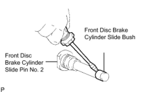 (a) Remove the front disc brake cylinder slide bush from the front disc brake cylinder slide pin No. 2.