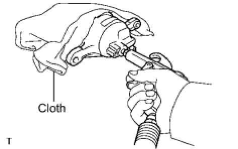 (a) Place a piece of cloth between the brake piston and the disc brake cylinder sub-assembly.