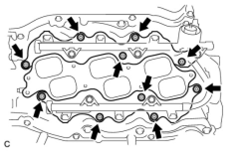 Install and tighten the 6 bolts and 4 nuts uniformly in several steps.