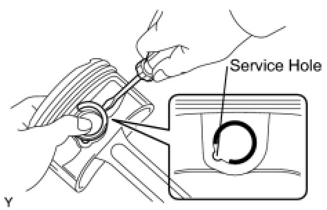 HINT: Be sure that the end gap of the snap ring is not aligned with the pin hole cutout portion of the piston.