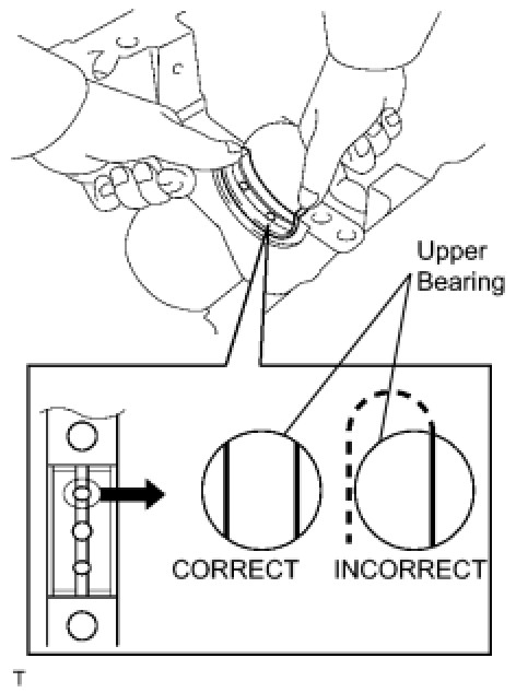 (1) Install the upper bearings to the cylinder block as shown in the illustration.
