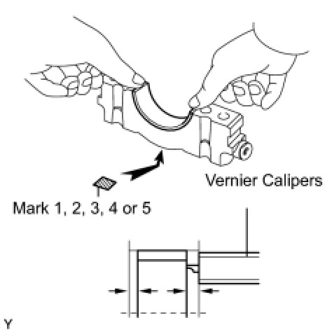 (2) Using vernier calipers, measure the distance between the bearing cap's edge and the lower bearing's edge.