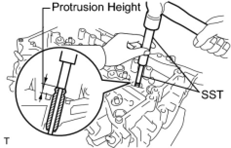(d) Using SST, tap in new valve guide bushes to the specified protrusion height.