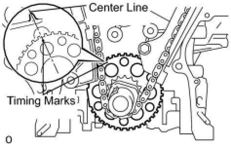 (d) Remove the hexagon wrench of the chain tensioner. Check that each timing mark is aligned with the crankshaft at the TDC / compression.