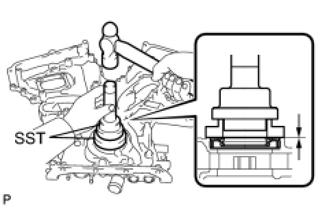 (a) Using SST, tap in a new oil seal until its surface is flush with the timing gear case edge.