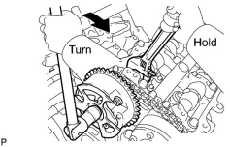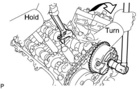 (c) Turn the camshaft timing gear assembly on the RH bank counterclockwise to tighten the chain between the banks.