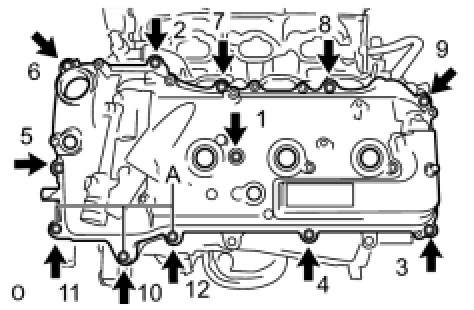 HINT: After tightening all bolts, check the tightening torque of 1 and 11. Retighten the bolt if necessary.