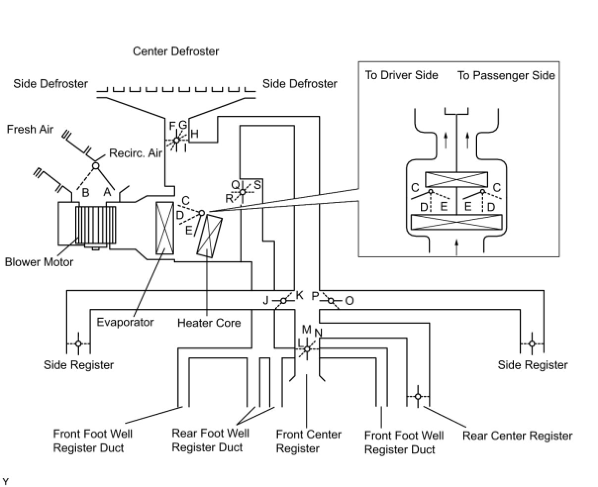 - A semi-center location air conditioner unit, in which the evaporator and heater core are placed in the vehicle's longitudinal direction, is used.