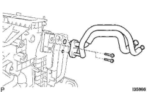 (c) Using a hexagon wrench 4.0 mm, install the air conditioning tube assembly with the 2 hexagon bolts.