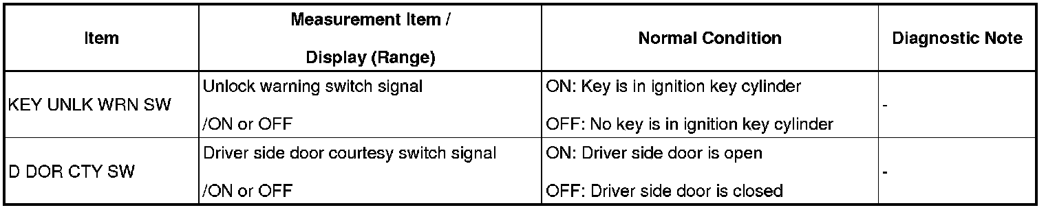 DOOR LOCK: KEY REMINDER WARNING SYSTEM: DATA LIST / ACTIVE TEST
