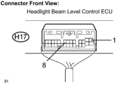 (a) Disconnect the 1D connector of instrument panel junction block assembly and the H17 connector of headlight beam level control ECU.