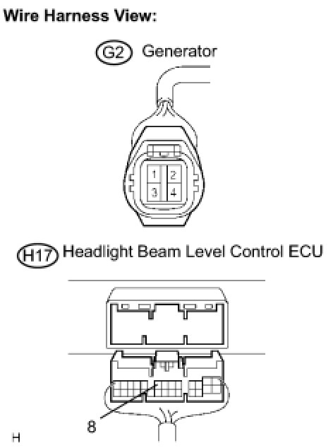 (a) Disconnect the G2 connector generator and the H17 connector of headlight beam level control ECU.